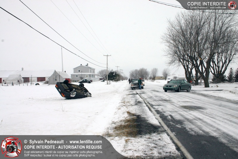 Une voiture fait une sortie de route et se retrouve sur le toit.