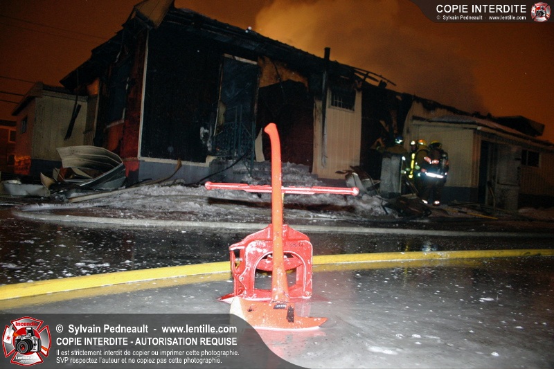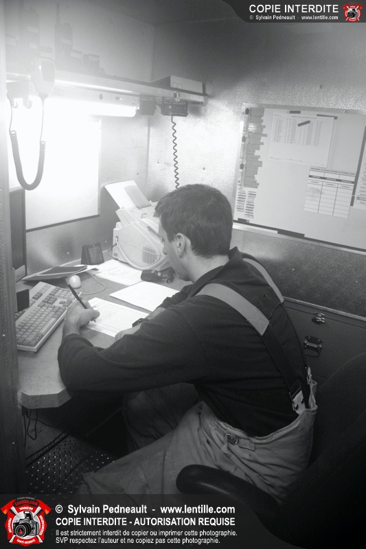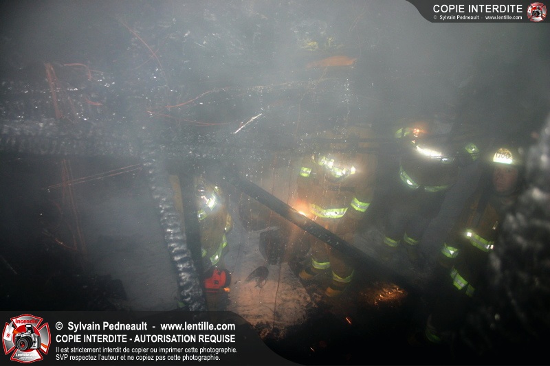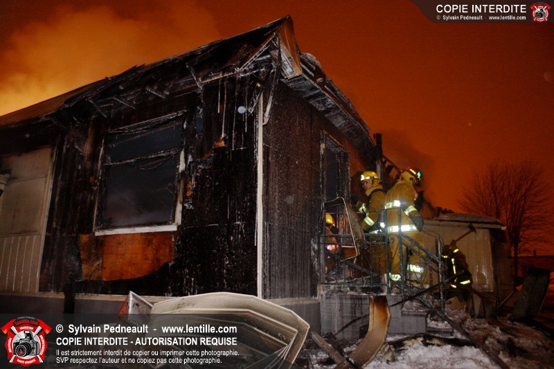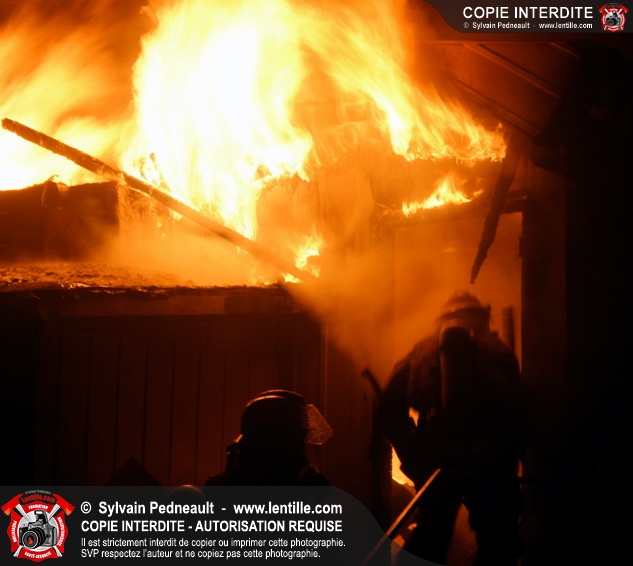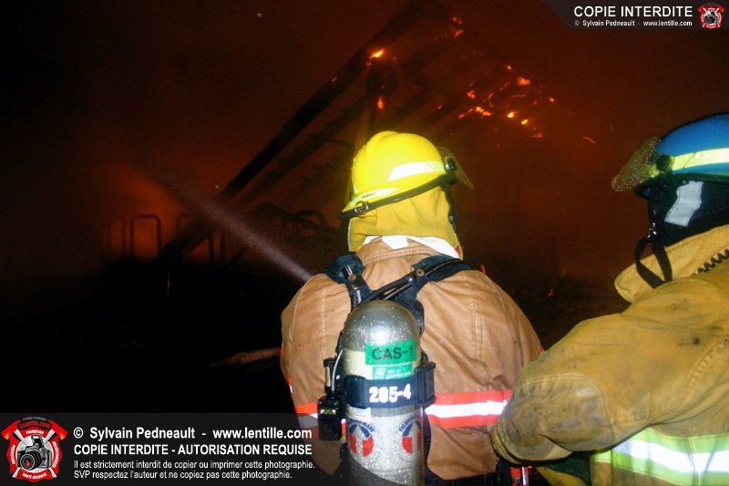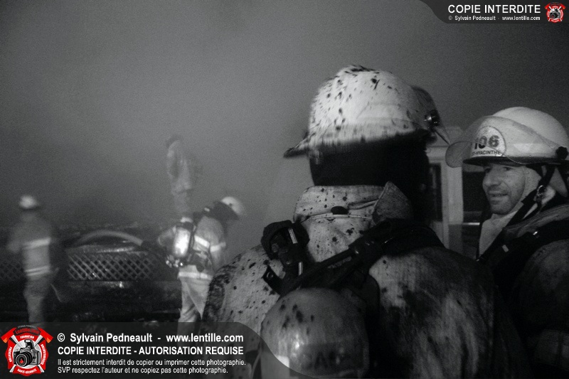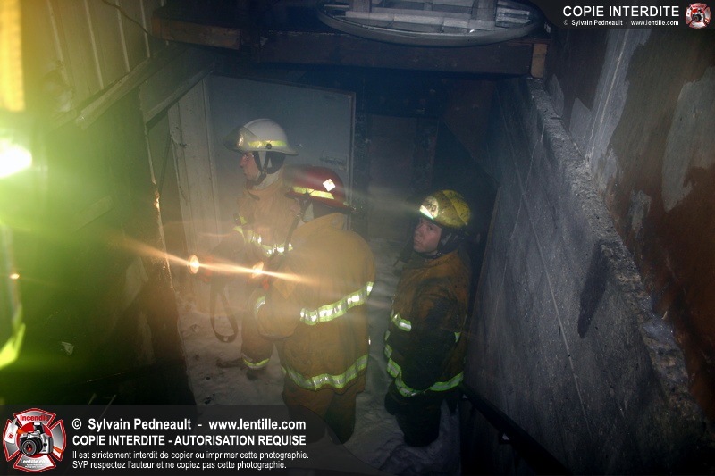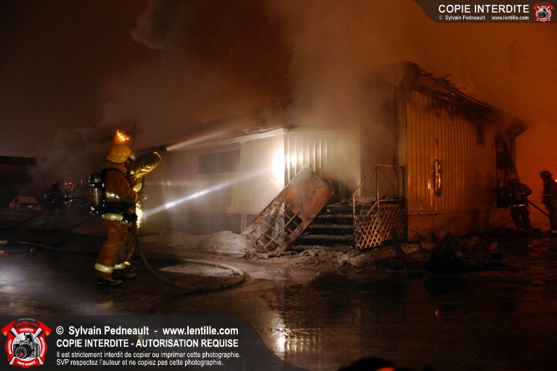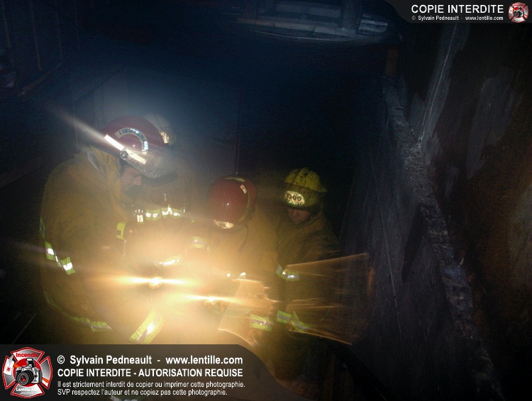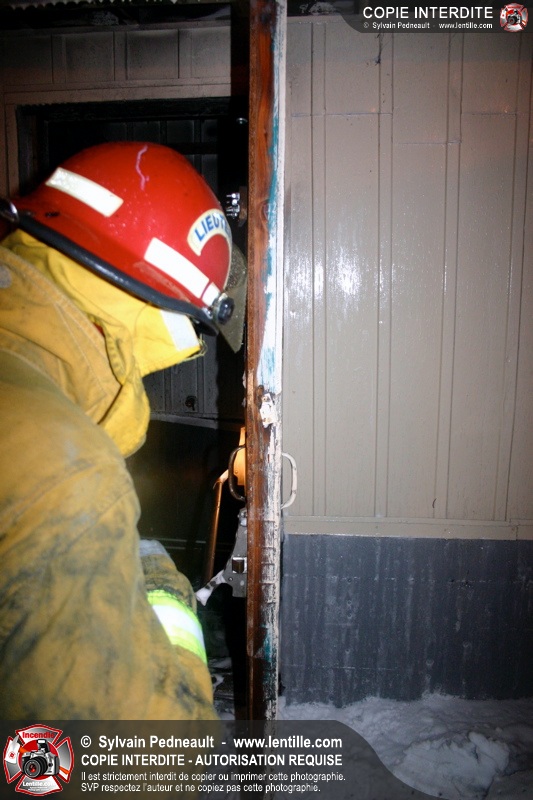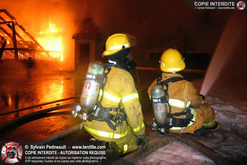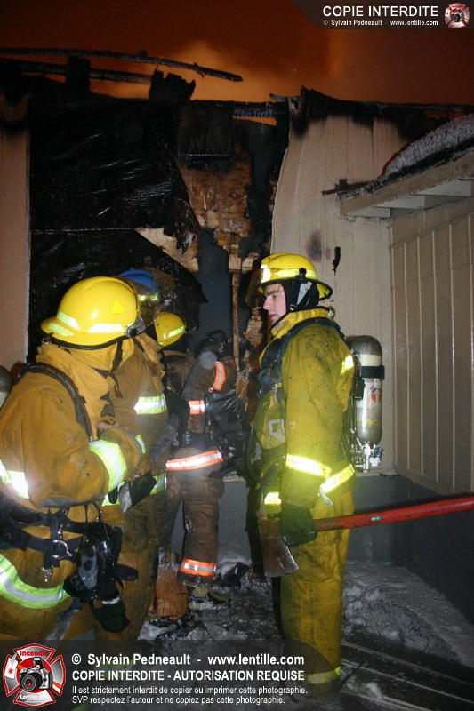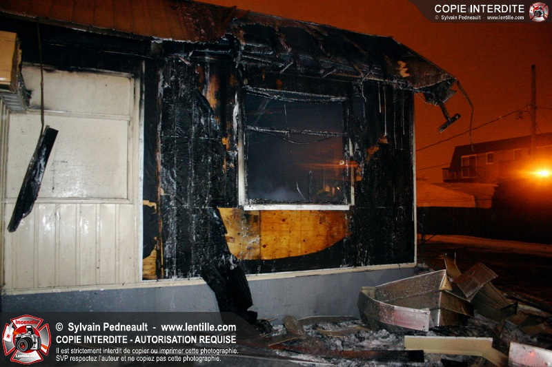 L'unité 205, encore à bonne distance du brasier, donne un 10-07 à la vue des flammes de plusieurs mètres de haut. Étant donné la perte évidente du bâtiment et l'absence de risque de propagation collatérale, une première alarme suffit à combattre le sinistre d'origine suspecte.