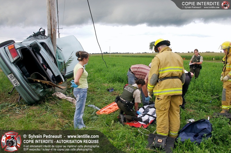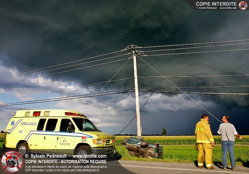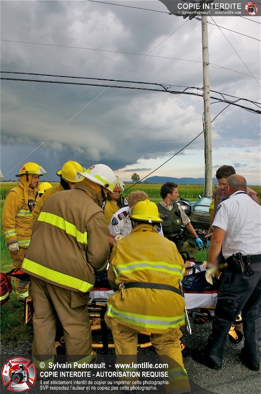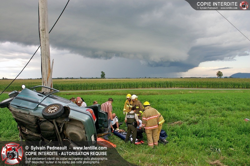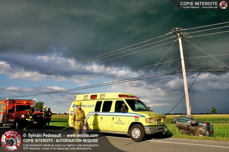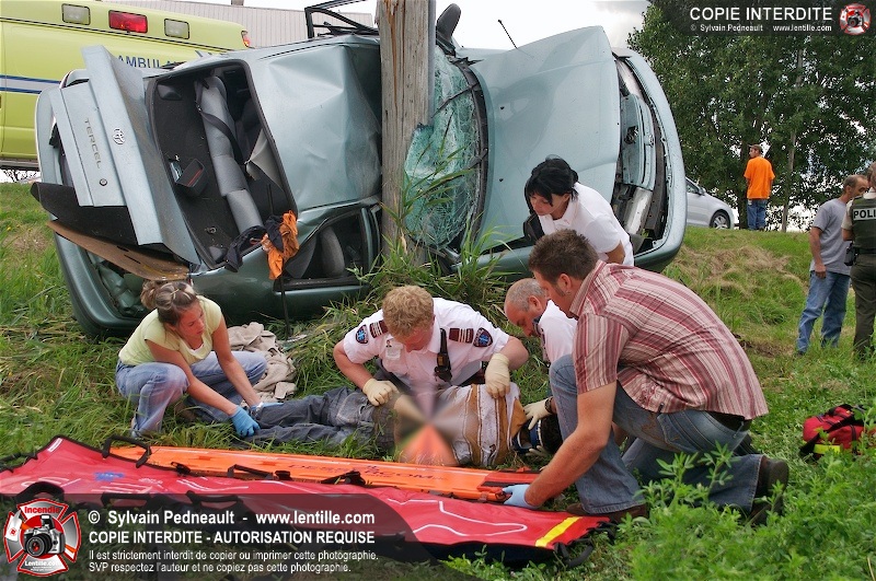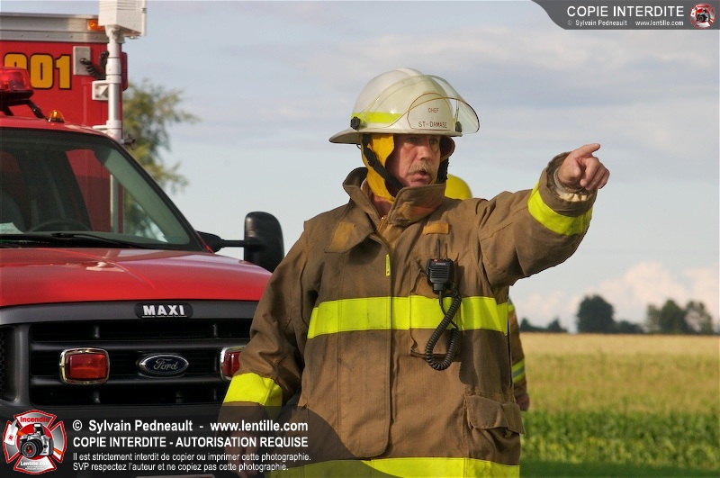 L'appel est entré comme une désincarcération, cependant l'intervention n'a pas nécessité de désincarcération comme telle puisque le conducteur avait été éjecté. Les pompiers de St-Damase, l'unité de désincarcération de Saint-Hyacinthe, les paramédics de Saint-Hyacinthe et la Sûreté du Québec étaient présents sur les lieux.