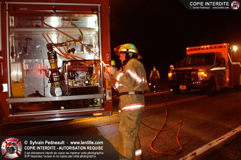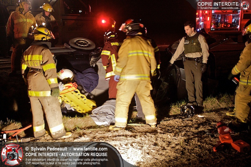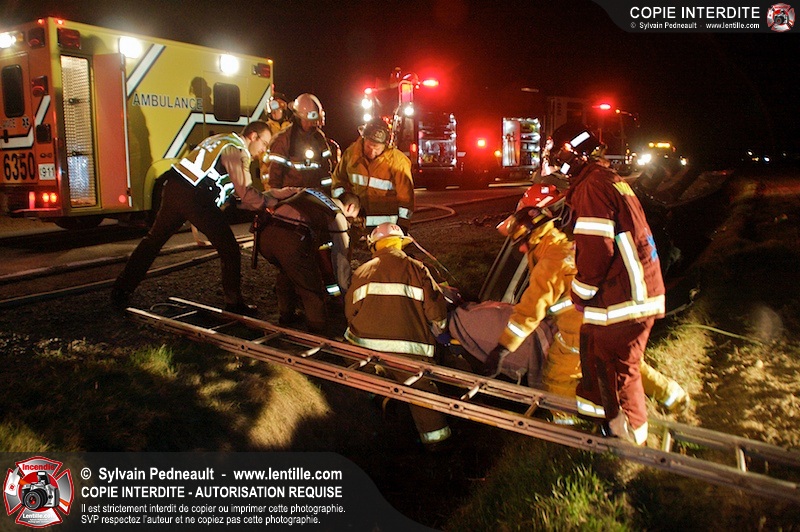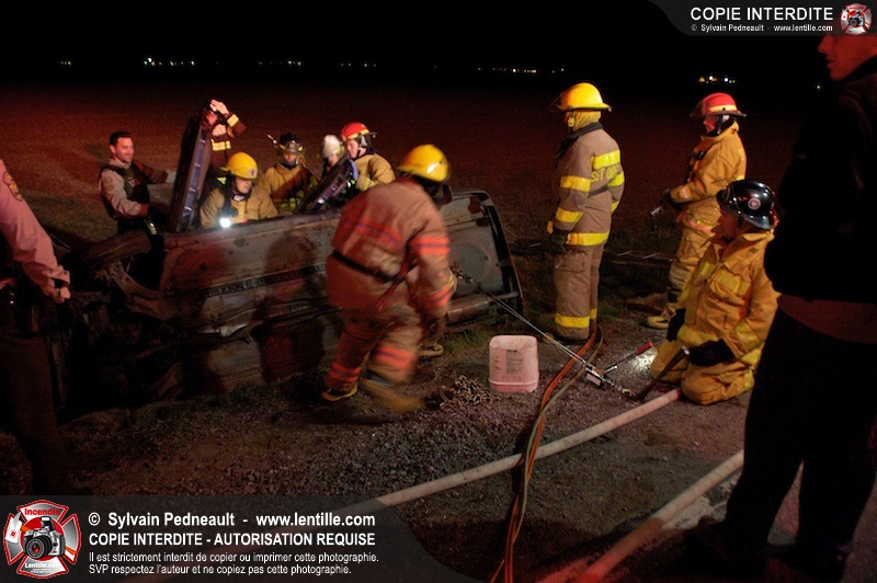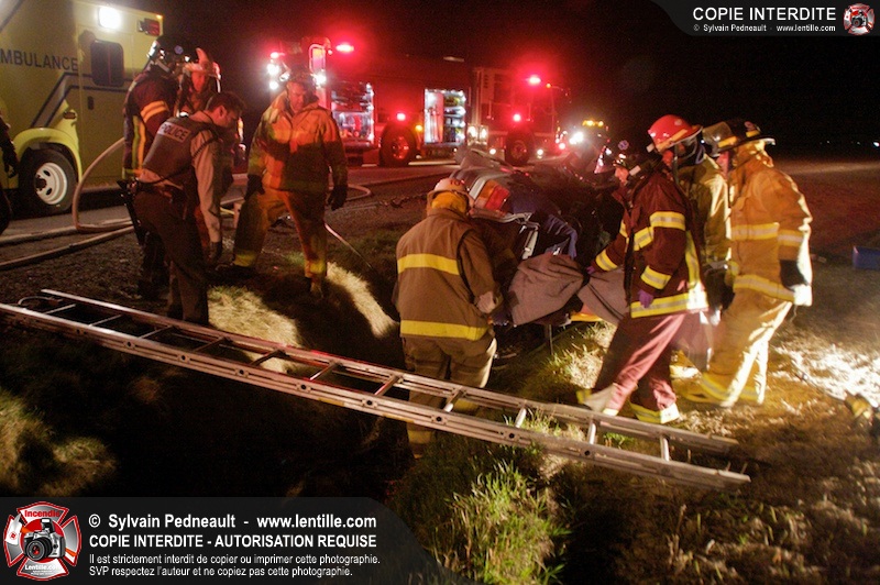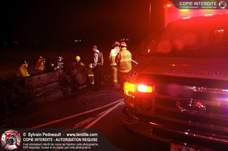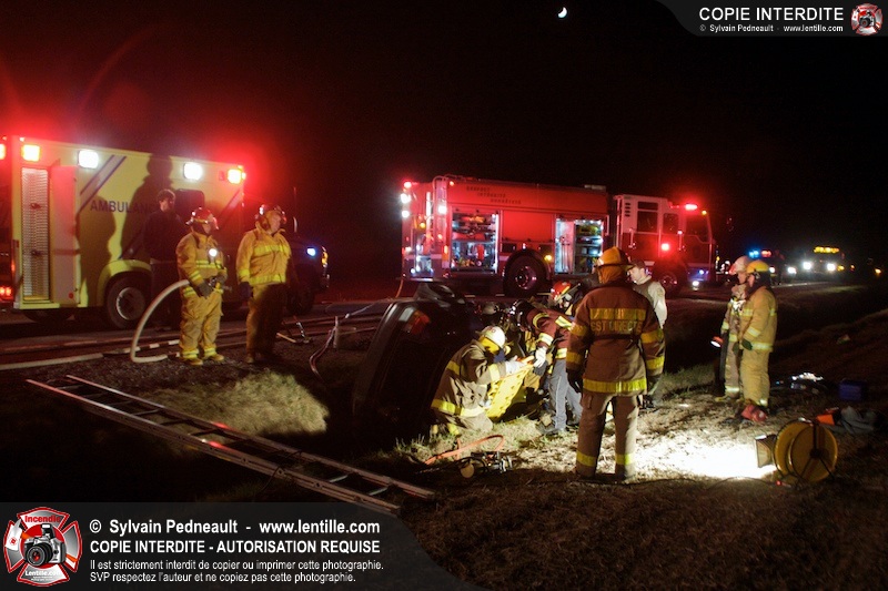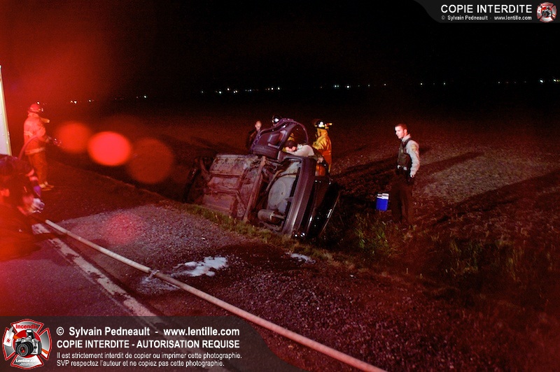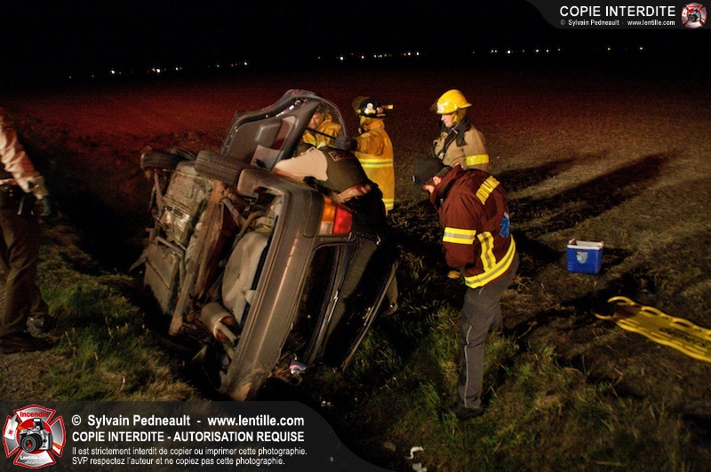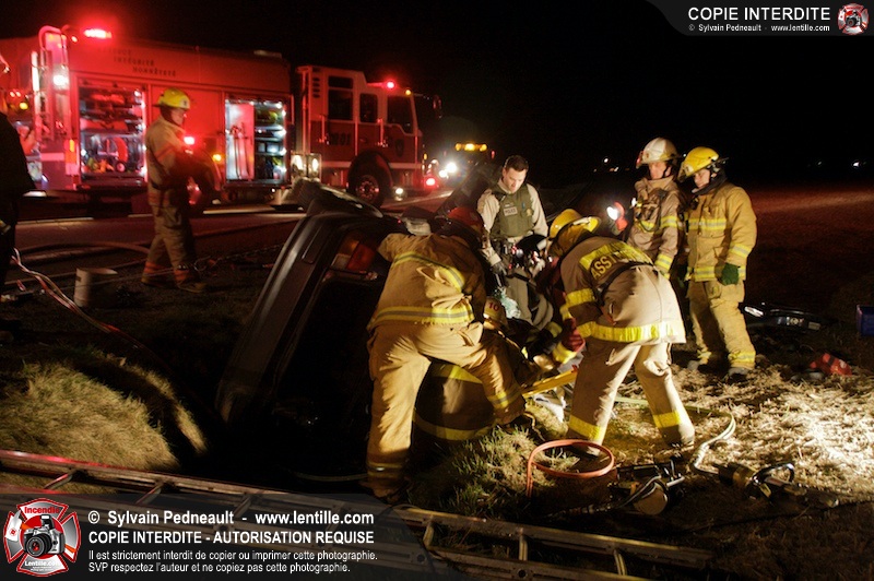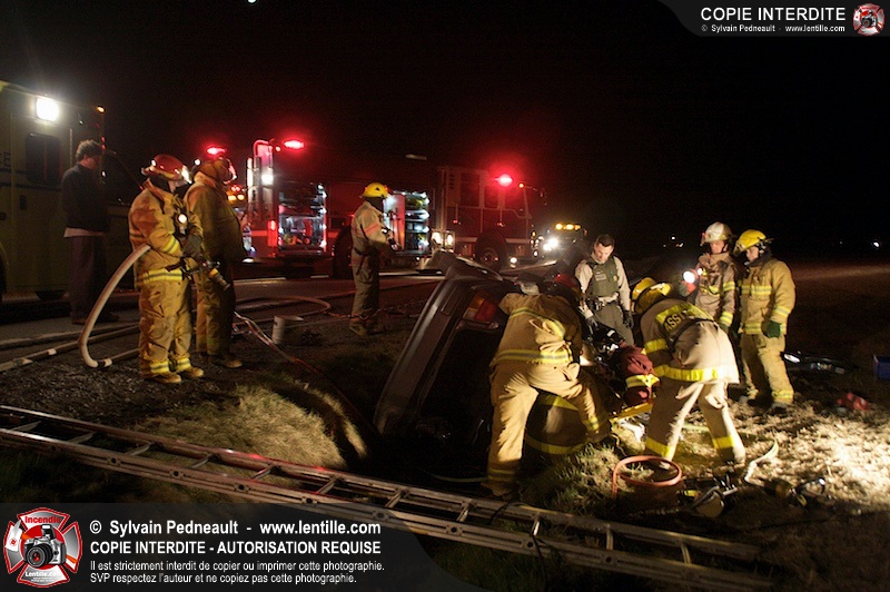 L'équipe de garde de la caserne 1 de Saint-Hyacinthe s'est rendue sur le Chemin Benoit à St-Damase pour une désincarcération automobile. Les pompiers de St-Damase sont intervenus en assistance à la désincarcération et pour la protection incendie. Les policiers de la Sûreté du Québec ainsi que l'unité paramédicale 6350 sont également intervenus.