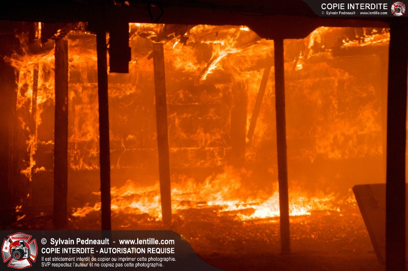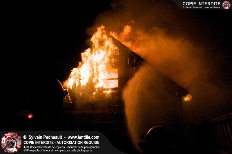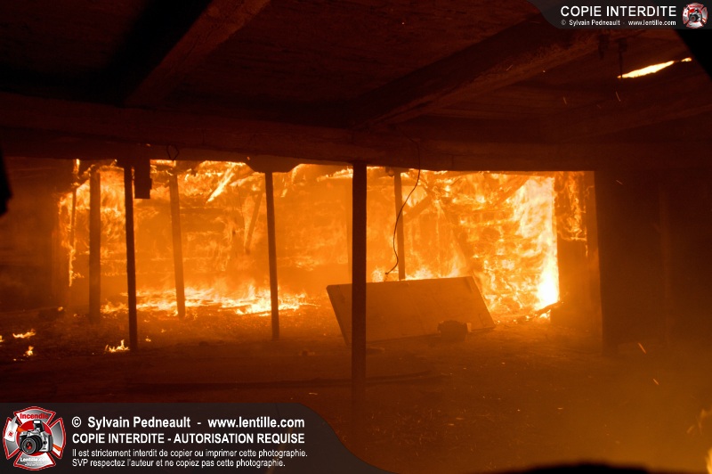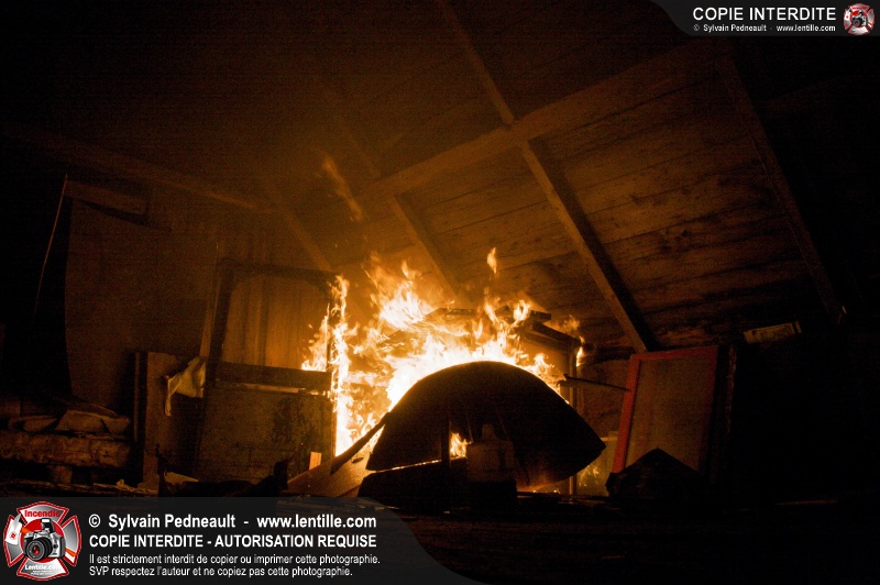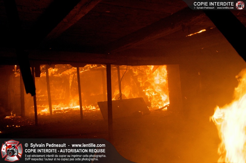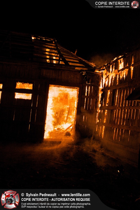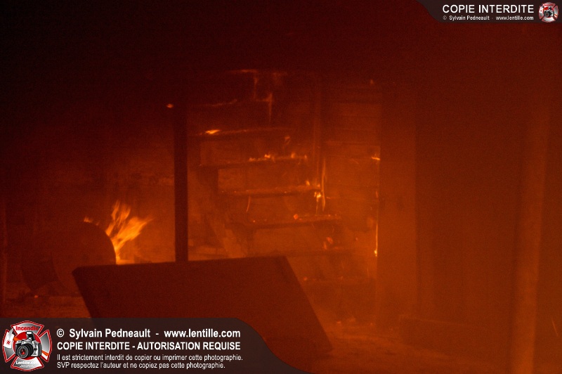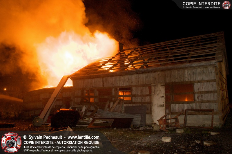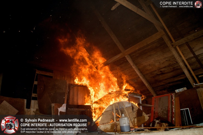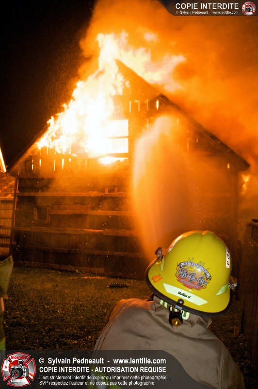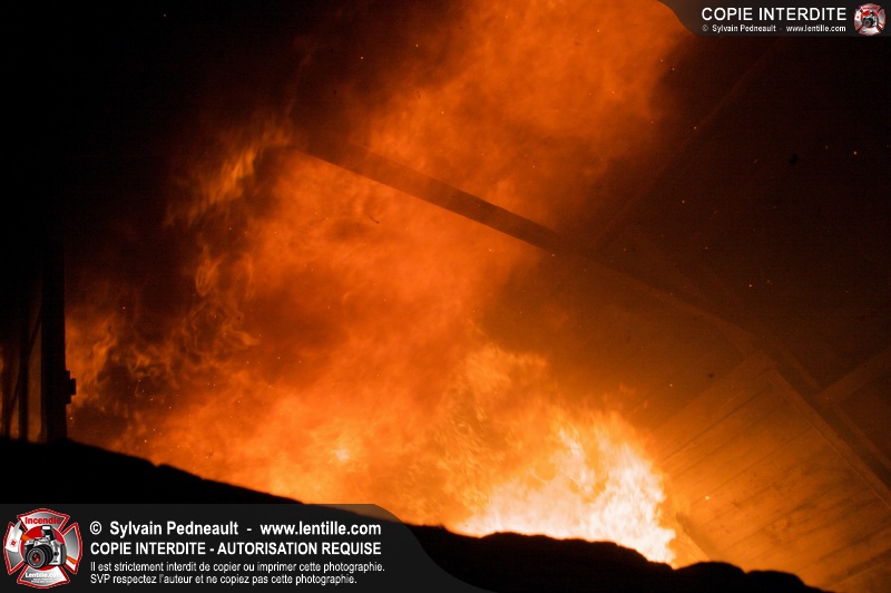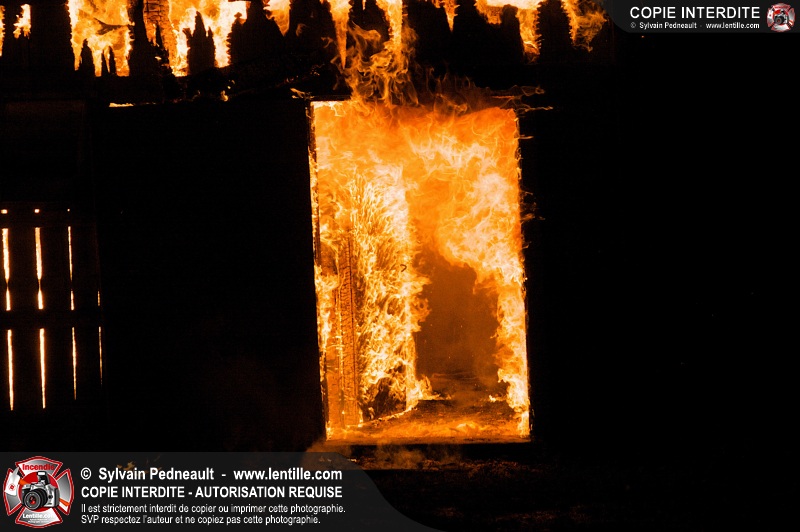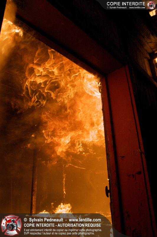 Les pompiers de St-Hugues ont eu la chance de disposer d'un bâtiment qui devait être démoli afin d'organiser une formation d'intervention sur un incendie réel.