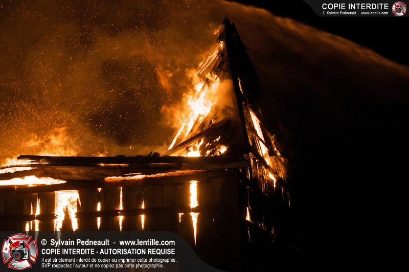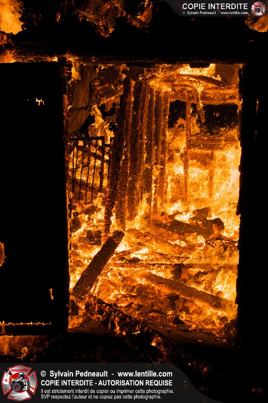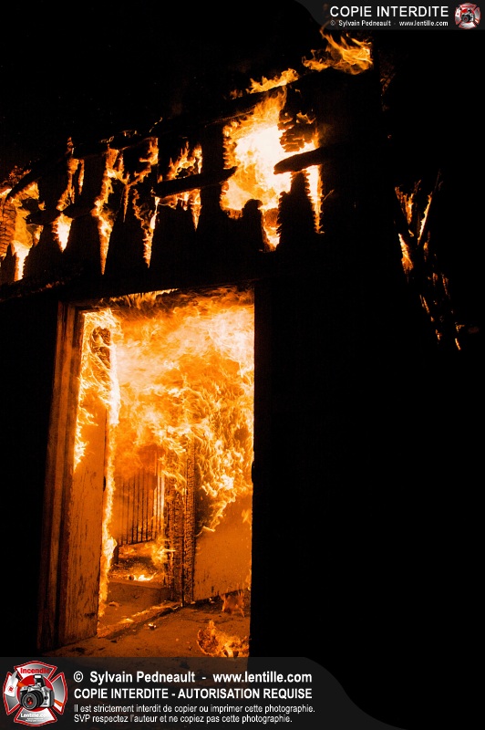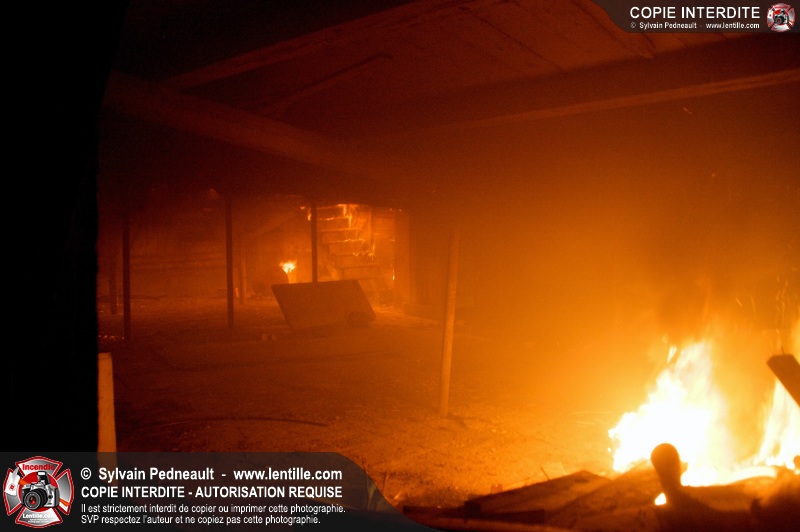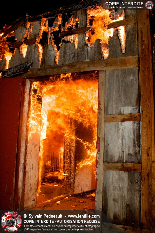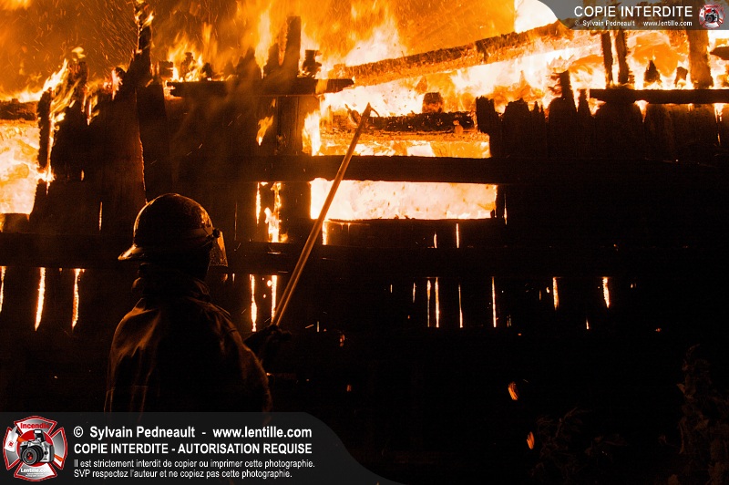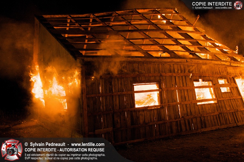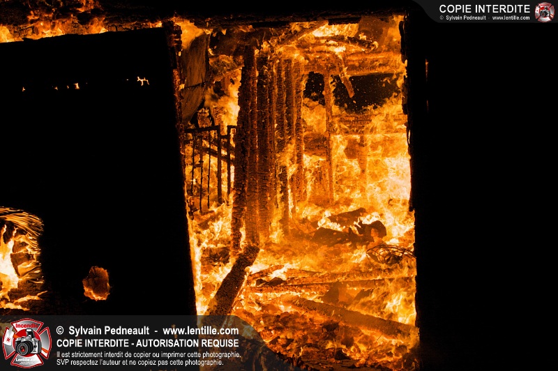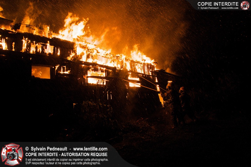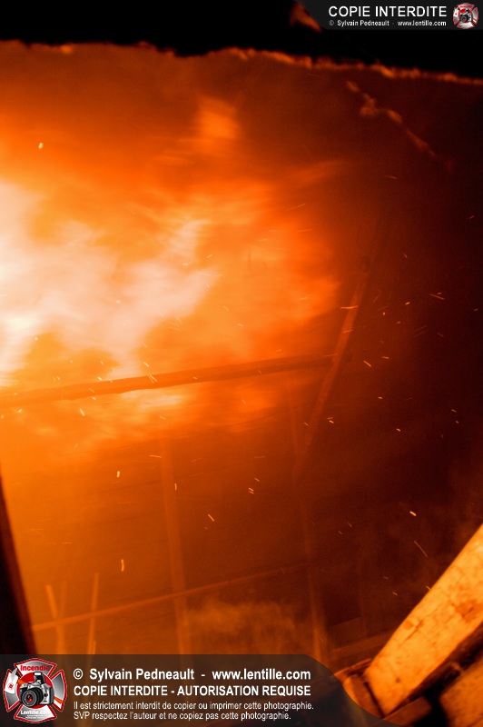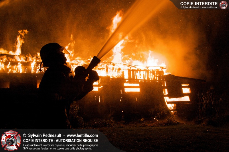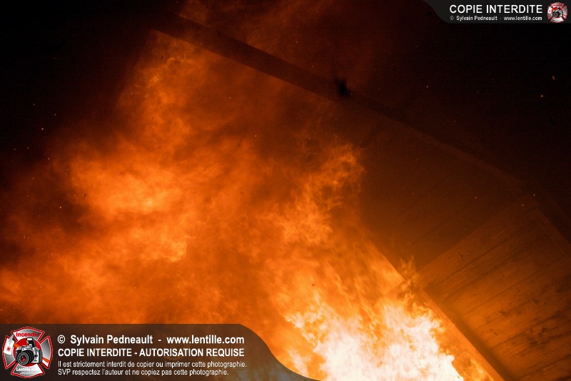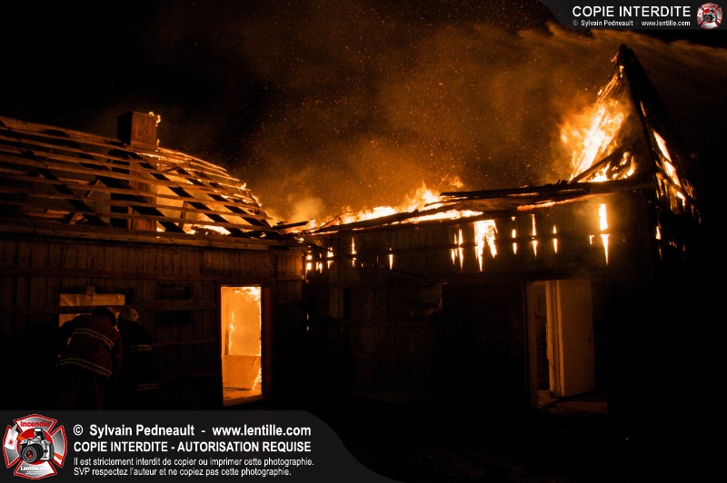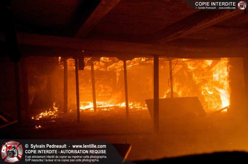 Les pompiers de St-Hugues ont eu la chance de disposer d'un bâtiment qui devait être démoli afin d'organiser une formation d'intervention sur un incendie réel.
