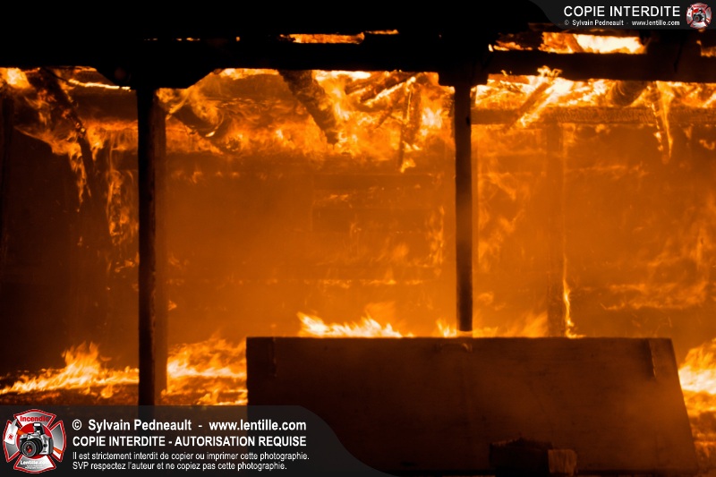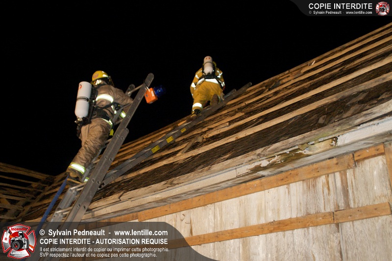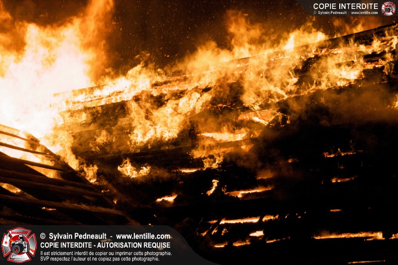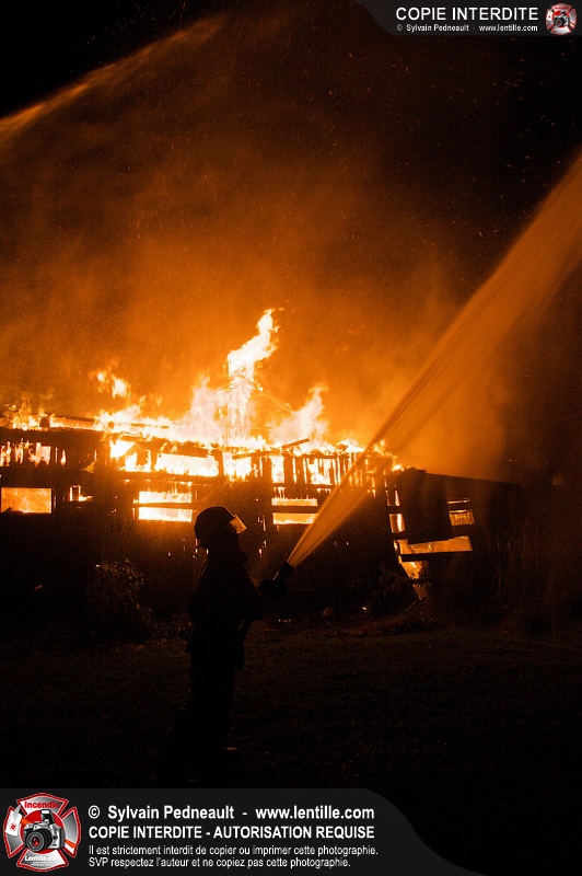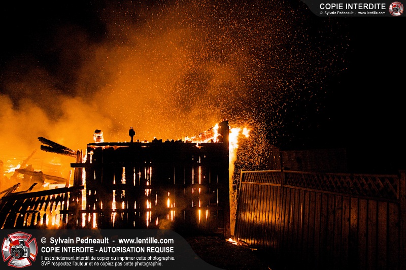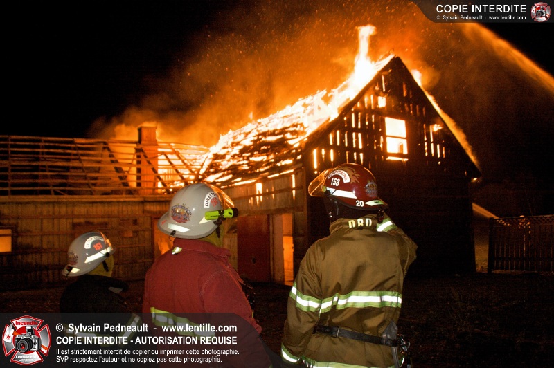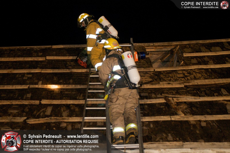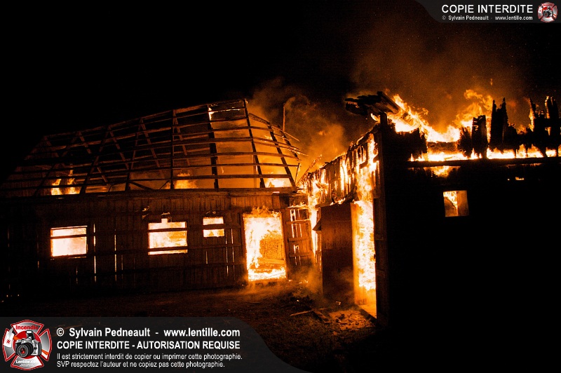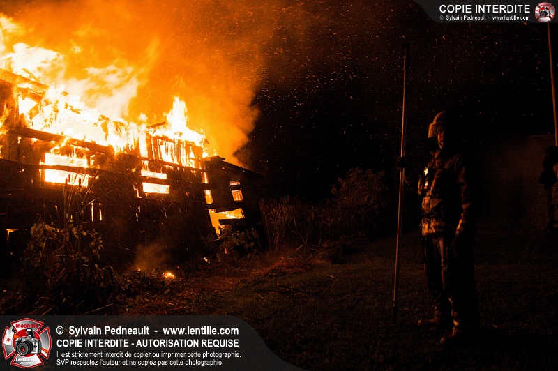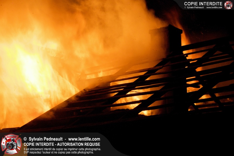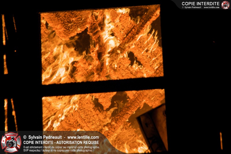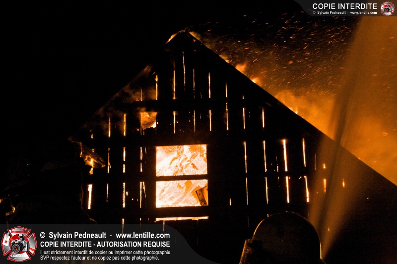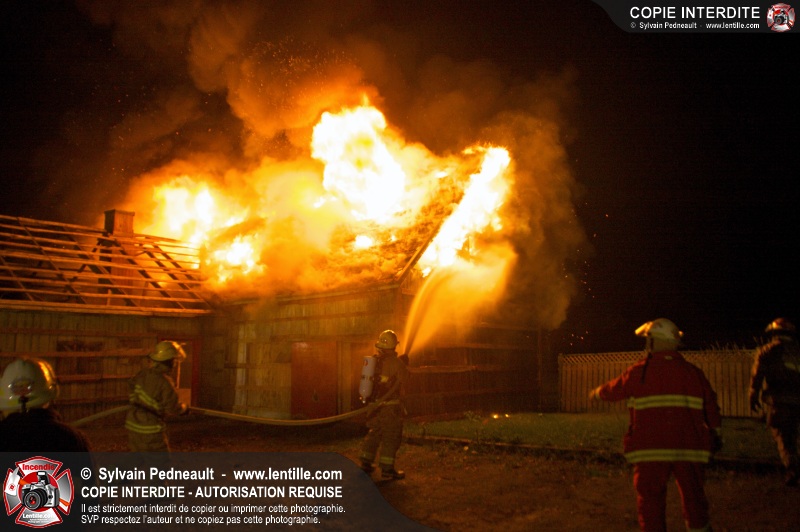 Les pompiers de St-Hugues ont eu la chance de disposer d'un bâtiment qui devait être démoli afin d'organiser une formation d'intervention sur un incendie réel.