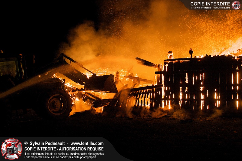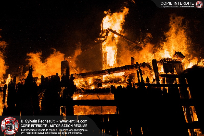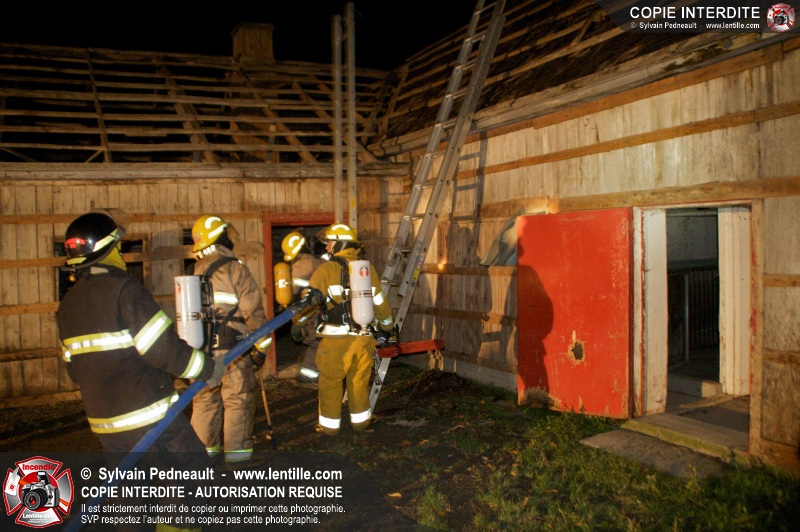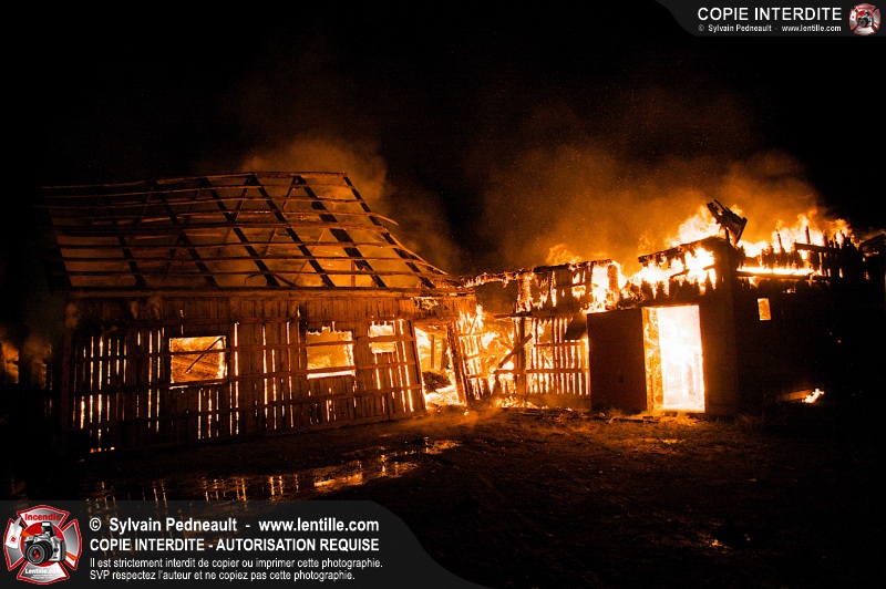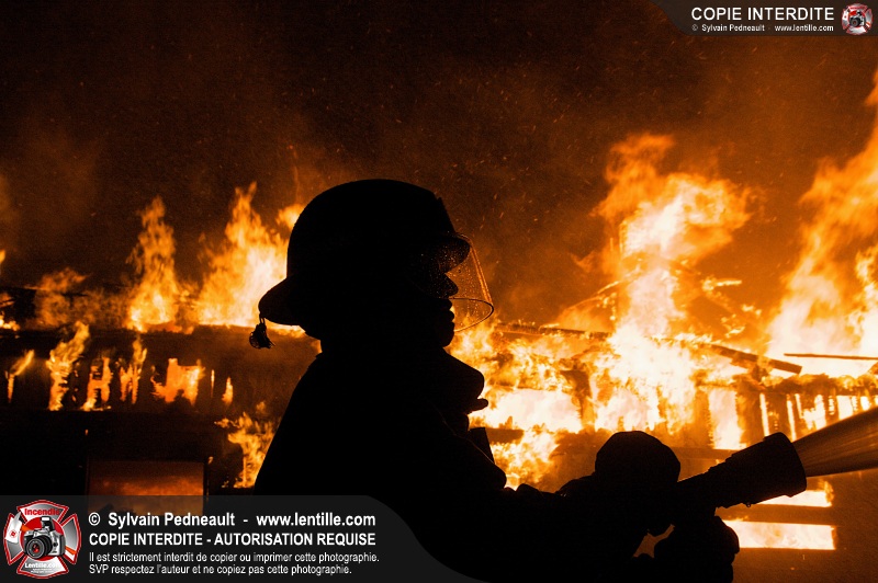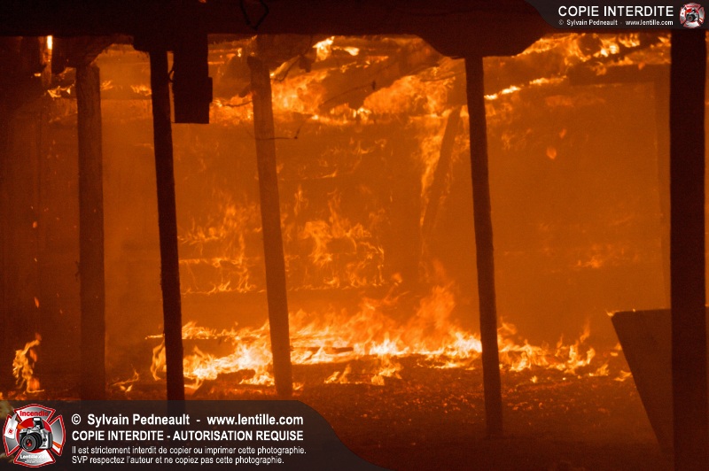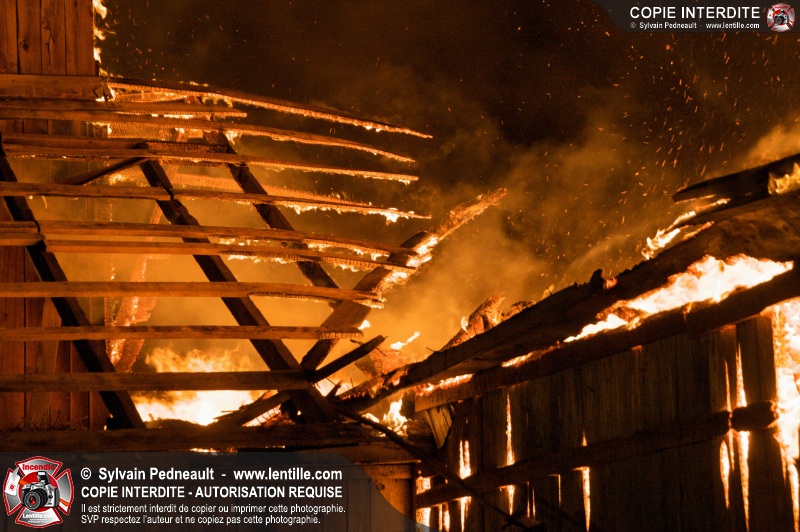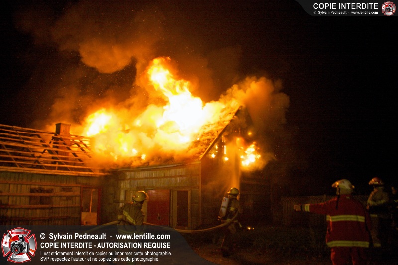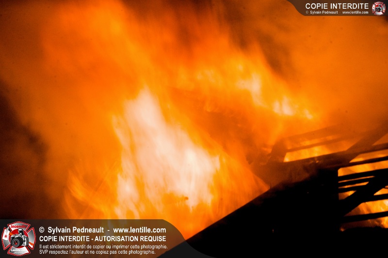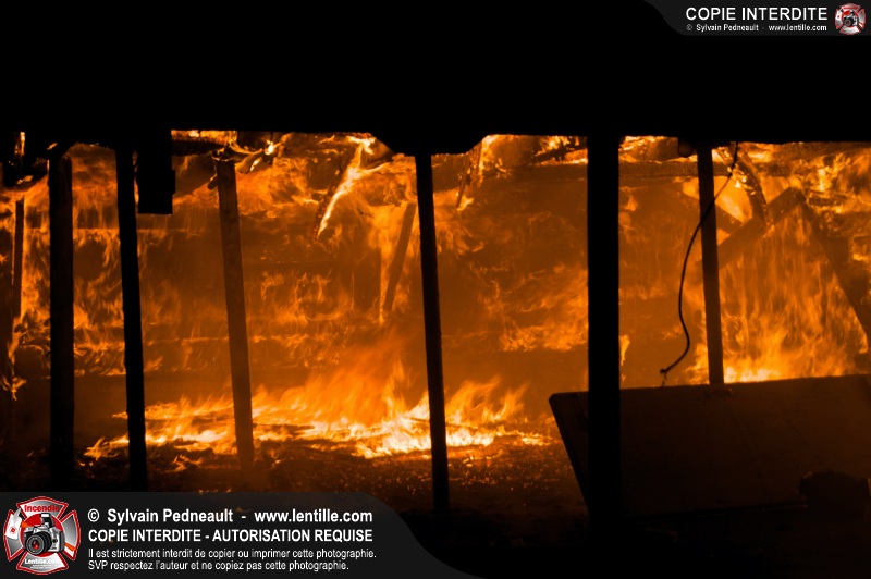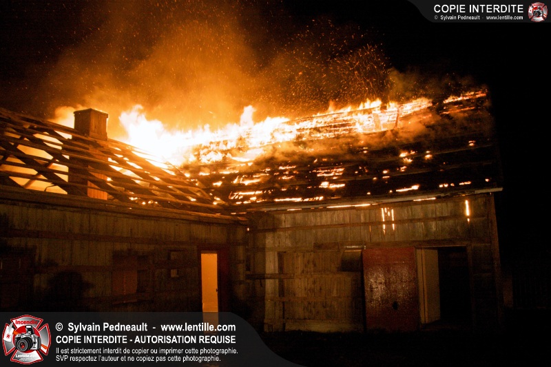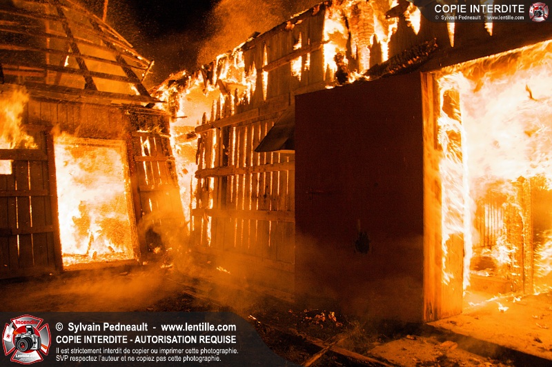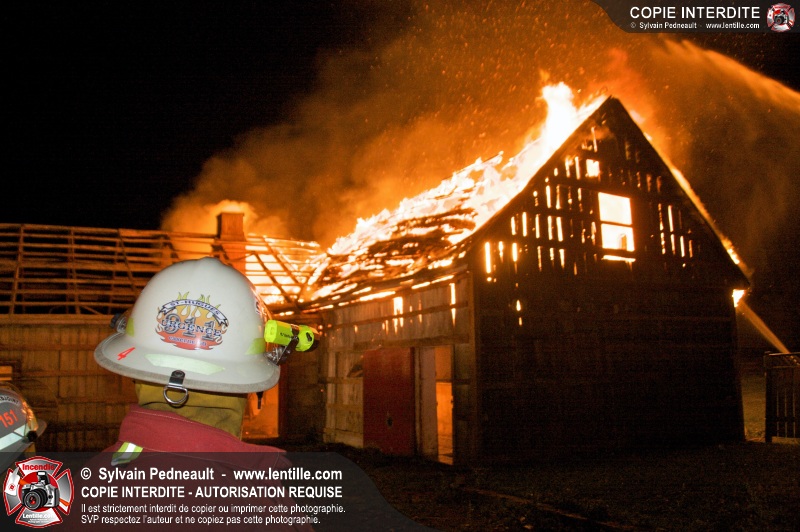 Les pompiers de St-Hugues ont eu la chance de disposer d'un bâtiment qui devait être démoli afin d'organiser une formation d'intervention sur un incendie réel.